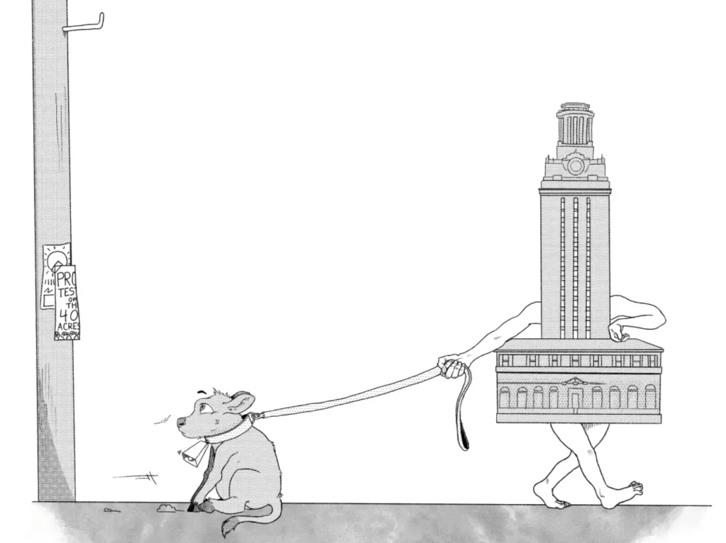 There are two types of student media at UT Austin. First and certainly foremost is The Daily Texan. It is an insurmountable media monster, kept alive by its master—Texas Student Media. Regardless of any pretense or protest, The Texan barks for the same ring of administrators and presidents that siphon $10,000 a year from every single UT student. Through The Texan, the university casts its influence and advances its interests. Do not be fooled. The University will always fervently posture to make us believe they care about our fates… but their mask of humanity slips.